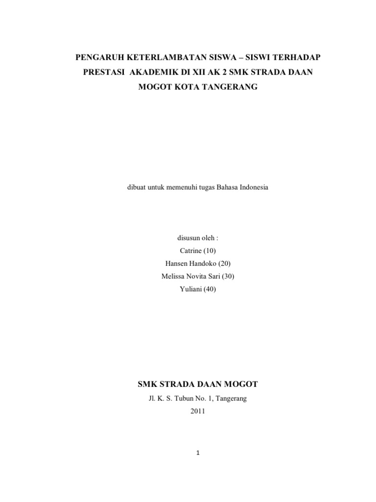 Buku referensi yang penulis susun berkenaan dengan judul karya tulis, komputer dan internet guna mendapatkan data ± data pelengkap dan dalam. Namun dengan alasan apapun, pimpinan sudah sewajarnya. Siswa yang tidak masuk sekolah karena sakit atau alasan penting lainnya harus ada pemberitahuan langsung dari wali murid dan jika sakit lebih dari 3 hari harus menggunakan surat keterangan dokter. Setiap keterlambatan dan/atau kegagalan pembayaran produk kartuhalo yang disebabkan oleh kelalaian pelanggan atau tidak terlaksananya pembayaran dari bank penerbit kartu kredit terhitung.